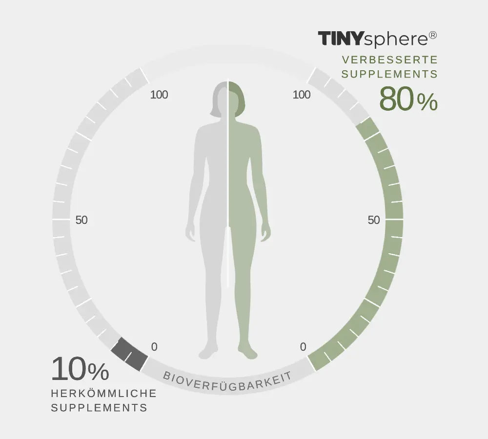 - ✔ Die patentierte TINYsphere® Formulierung sorgt für eine maximale Bioverfügbarkeit und Wirksamkeit